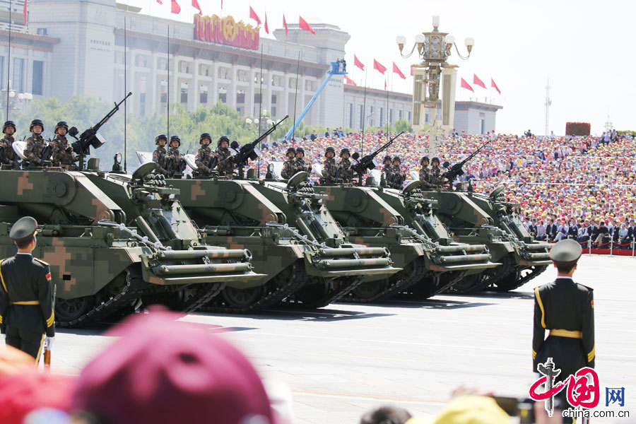 9月3日,中國人民抗日戰爭暨世界反法西斯戰爭勝利70周年紀念大會在北京隆重舉行。裝備保障方隊通過天安門廣場接受檢閱。中國網楊佳攝影