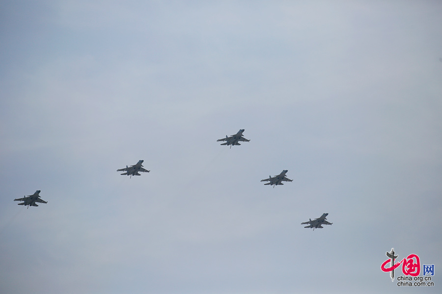 9月3日,中國人民抗日戰爭暨世界反法西斯戰爭勝利70周年紀念大會在北京隆重舉行。圖為艦載機梯隊接受檢閱。中國網記者 楊佳 攝