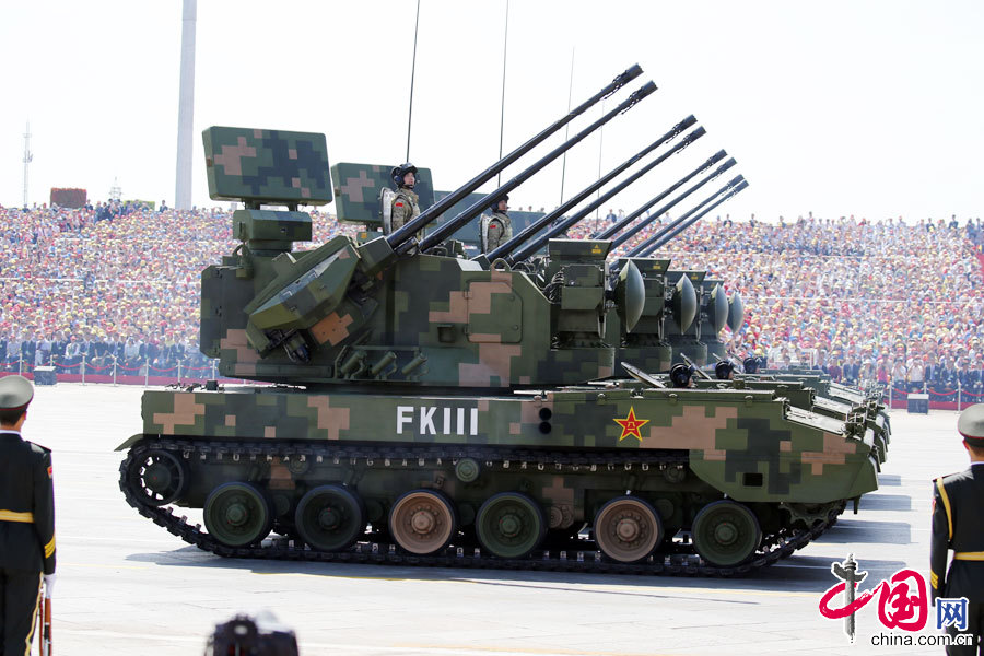 9月3日,中國人民抗日戰爭暨世界反法西斯戰爭勝利70周年紀念大會在北京隆重舉行。這是高射炮兵方隊接受檢閱。