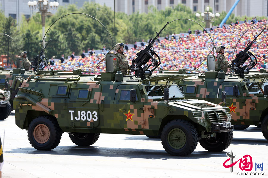 9月3日,中國(guó)人民抗日戰(zhàn)爭(zhēng)暨世界反法西斯戰(zhàn)爭(zhēng)勝利70周年紀(jì)念大會(huì)在北京隆重舉行。輕型突擊車(chē)方隊(duì)接受檢閱。中國(guó)網(wǎng)楊佳攝影