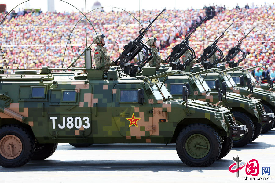 9月3日,中國人民抗日戰爭暨世界反法西斯戰爭勝利70周年紀念大會在北京隆重舉行。輕型突擊車方隊接受檢閱。
