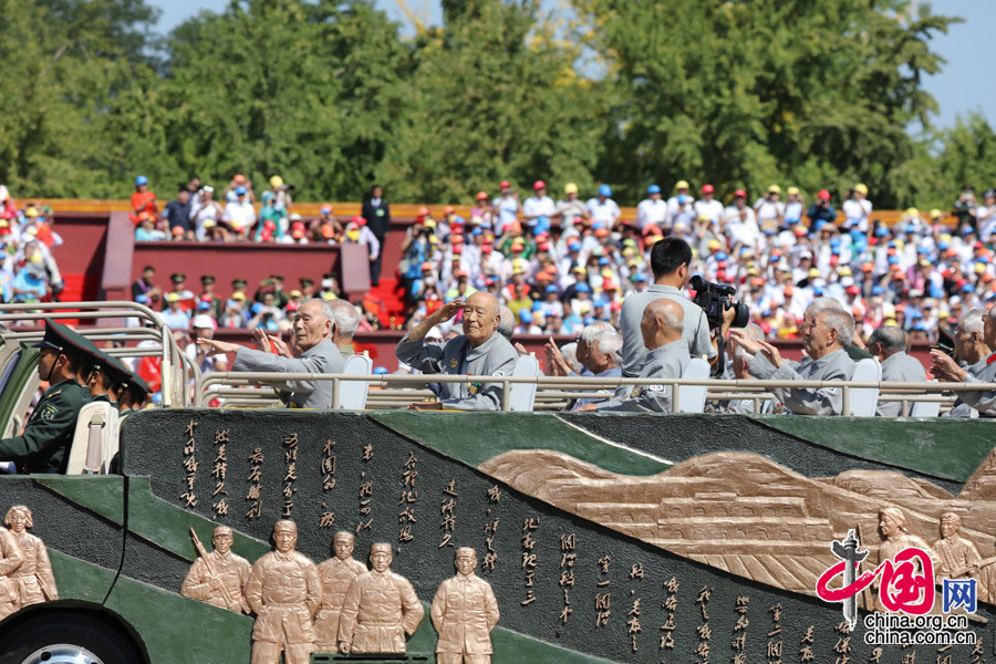9月3日,中國人民抗日戰爭暨世界反法西斯戰爭勝利70周年紀念大會在北京隆重舉行。這是抗戰老兵乘車方隊。中國網記者 董寧攝影