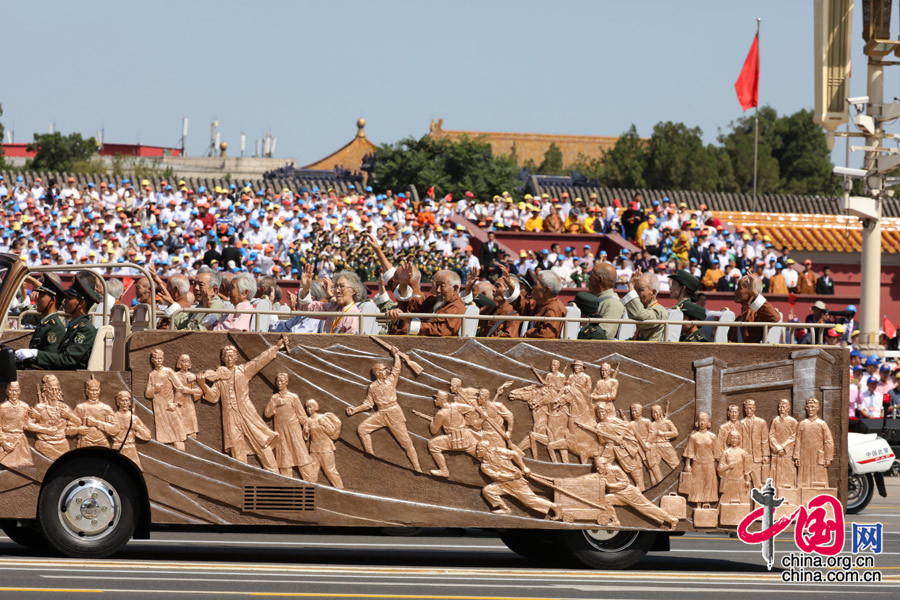 9月3日,中國人民抗日戰爭暨世界反法西斯戰爭勝利70周年紀念大會在北京隆重舉行。抗戰支前模范乘車方隊隊。 中國網記者 董寧攝影