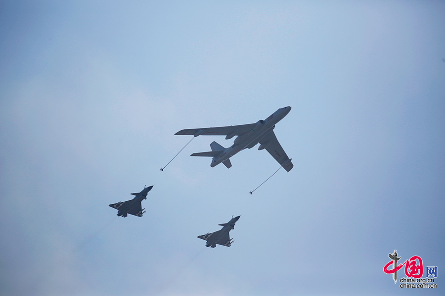 9月3日,中國人民抗日戰爭暨世界反法西斯戰爭勝利70周年紀念大會在北京隆重舉行。圖為加受油機梯隊接受檢閱。中國網記者 楊佳 攝