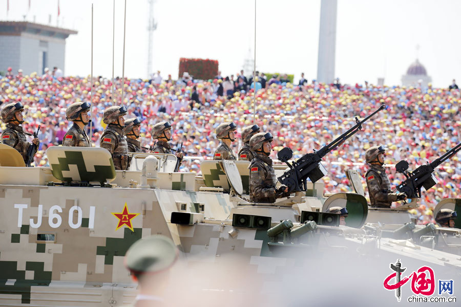 9月3日,中國人民抗日戰爭暨世界反法西斯戰爭勝利70周年紀念大會在北京隆重舉行。履帶自行火炮方隊接受檢閱。中國網楊佳攝影