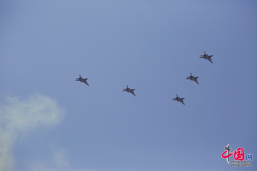 9月3日,中國人民抗日戰爭暨世界反法西斯戰爭勝利70周年紀念大會在北京隆重舉行。圖為海上巡邏機梯隊接受檢閱。中國網記者 楊佳 攝
