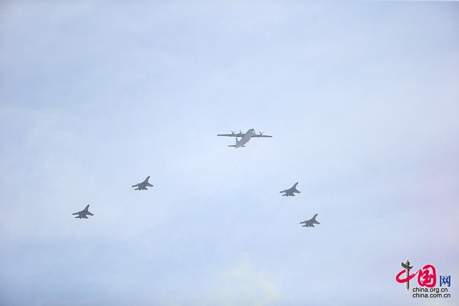 9月3日,中國人民抗日戰爭暨世界反法西斯戰爭勝利70周年紀念大會在北京隆重舉行。圖為預警指揮機梯隊接受檢閱。中國網記者 鄭亮 攝